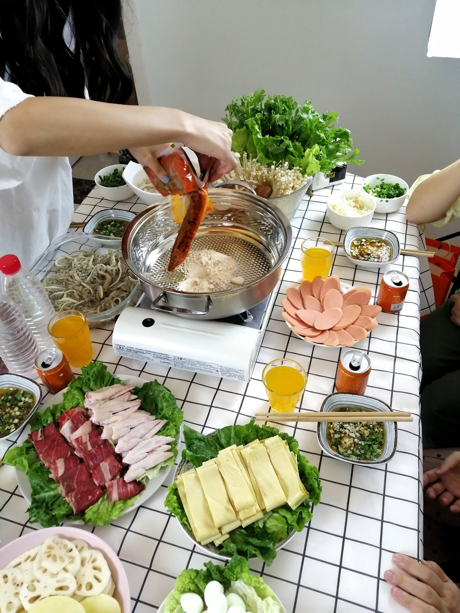 – Cooking tools: A portable stove, a communal pot, and individual strainers or chopsticks.